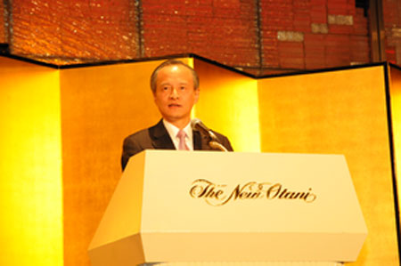 記者在現(xiàn)場(chǎng)看到,日本政經(jīng)界的許多“大腕”人物出席了招待會(huì)。其中有日本參議院議長(zhǎng)江田五月、經(jīng)濟(jì)產(chǎn)業(yè)大臣直島正行、國(guó)家公安委員會(huì)委員長(zhǎng)中井洽、公明黨黨首山口那津男、前首相福田康夫、中曾根康弘、前經(jīng)濟(jì)產(chǎn)業(yè)大臣二階俊博、前自民黨干事長(zhǎng)中川秀直、伊吹文明,經(jīng)團(tuán)聯(lián)會(huì)長(zhǎng)御手洗富士夫等等。
