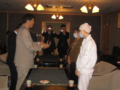 程雯激動地對趙大為領事表示:“是祖國和日本各界友人和臺灣同胞救了我,我一定要報答大家的恩情!背迢┑哪赣H吳國榮不停地流著眼淚,她說:“大家救了我女兒的命,女兒如果病好了,將來一定要報效祖國,做中日友好的橋梁。”