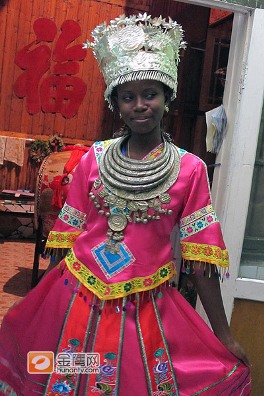 當(dāng)晚,在熱情的中國家長帶領(lǐng)下,漢語橋選手“黑珍珠”闖三關(guān):對(duì)山歌、喝米酒、擊鼓后,順利入住苗家,當(dāng)穿上苗族服裝,“黑珍珠”興奮地在鏡子面前轉(zhuǎn)了幾圈,表達(dá)喜悅的心情。(李湘)