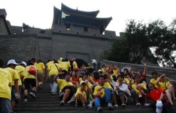 營員中的絕大多數(shù)是第一次到中國,長城在他們的腦海里只是關(guān)于“世界第八大奇跡”的想象,有機(jī)會(huì)親自攀登,大家的心情非常激動(dòng)。車行至居庸關(guān)景區(qū),翠峰重迭,風(fēng)光旖旎,長城蜿蜒如龍盤踞在崇山峻嶺之間,營員們按捺不住激動(dòng)的心情,不禁歡呼起來。