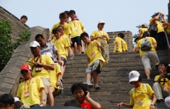 中新網(wǎng)7月28日電 據(jù)廣東僑網(wǎng)消息,在人民大會(huì)堂參加完隆重的開營儀式后,廣東省僑辦組織的550多名華裔青少年乘坐12部大巴,于7月25日下午浩浩蕩蕩的前往京城之旅的第一站——京北長城沿線最著名的古關(guān)城居庸關(guān),勇于攀登的廣東團(tuán)營員成為“中國尋根之旅”團(tuán)隊(duì)中的首批“好漢”,很多第一次到中國的華裔青少年實(shí)現(xiàn)了成為“長城好漢”的夢想。