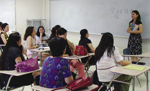 近年來,一直教10、11年級中文的程薇娜說,在美國教高年級學(xué)生學(xué)中文,有兩點很重要:第一,留住學(xué)生的學(xué)習(xí)興趣;第二,幫助學(xué)生考好SATⅡ(美國大學(xué)入學(xué)科目考試)。她認(rèn)為,只有把學(xué)生的基礎(chǔ)打好,學(xué)生們進入大學(xué)后意識到中文的重要性,才會自覺學(xué)好中文。