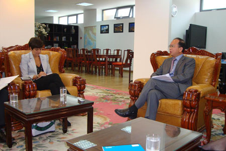 中新網(wǎng)9月28日電 據(jù)意大利歐聯(lián)通訊社報道,日前,中國駐意大利使館丁偉大使接受意大利當?shù)孛襟w《信使報》記者博齊專訪,向意大利記者介紹了意大利中國文化年的籌備情況,以及文化年活動的相關內(nèi)容。并應詢記者的請求,就中國經(jīng)濟發(fā)展形勢、人權(quán)現(xiàn)狀以及中美關系做了介紹。