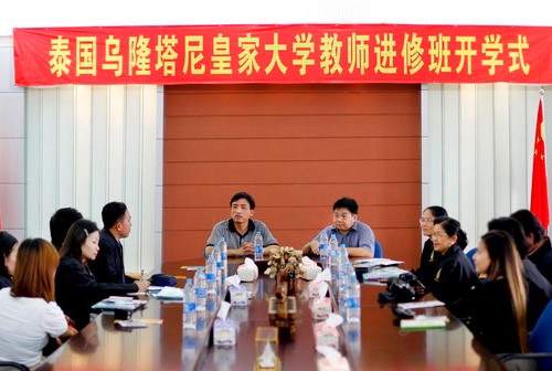 中新網(wǎng)10月11日電 據(jù)華僑大學華文學院網(wǎng)站消息,10月11日上午,泰國烏隆塔尼皇家大學教師團開學式在華僑大學華文學院一號樓會議室舉行。華文學院副院長陳旋波、培訓部主任李金鈔等出席了開學式。