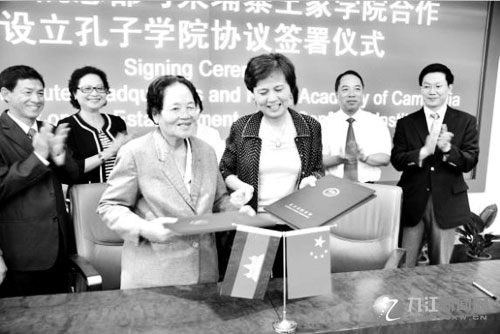新學(xué)年開(kāi)學(xué)之際,九江學(xué)院在迎接新生的同時(shí),正積極籌備另一件盛事——遴選派往柬埔寨王家學(xué)院孔子學(xué)院的管理人員和中文老師。歷經(jīng)兩年多的申辦和前期準(zhǔn)備,8月中旬,中國(guó)孔子學(xué)院總部與柬埔寨王家學(xué)院簽署了合作設(shè)立王家學(xué)院孔子學(xué)院的協(xié)議。九江學(xué)院作為中方承辦高校,與柬埔寨合作方簽訂了相關(guān)執(zhí)行協(xié)議。至此,柬埔寨王家學(xué)院孔子學(xué)院的申報(bào)工作畫(huà)上了圓滿的句號(hào),柬埔寨第一家孔子學(xué)院正式宣告誕生。九江學(xué)院也因此成為江西省除省城之外唯一一所成功申辦孔子學(xué)院的高校,為九江市國(guó)際交流合作提供了一個(gè)良好的平臺(tái),促進(jìn)了九江及九江學(xué)院國(guó)際知名度的提高。