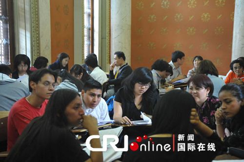 墨西哥國(guó)立自治大學(xué)孔子學(xué)院院長(zhǎng)阿科斯塔表示,隨著“漢語(yǔ)熱”和“中國(guó)風(fēng)”近年來(lái)在墨西哥的悄然興起,越來(lái)越多的墨西哥學(xué)生希望來(lái)到學(xué)院學(xué)習(xí)漢語(yǔ),但目前學(xué)院僅僅有5名漢語(yǔ)教師,遠(yuǎn)遠(yuǎn)不能滿足現(xiàn)在學(xué)生的需求。所以現(xiàn)在需要培養(yǎng)墨西哥自己的漢語(yǔ)教師。阿科斯塔說(shuō):“因?yàn)楝F(xiàn)在我們也沒(méi)有很多老師,但是還有很多人想學(xué)習(xí)漢語(yǔ),但是沒(méi)有老師怎么辦呢?所以我們需要培養(yǎng)我們自己的老師,墨西哥的老師,我覺(jué)得這樣我們可以滿足墨西哥人(學(xué)漢語(yǔ))的要求!