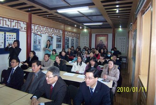 隨著蒙古國漢語教學的蓬勃發(fā)展,對本土漢語教師提出了更高要求。山東大學作為支持蒙古漢語教學的重點院校,在對蒙漢語師資培訓及教材建設(shè)等方面積累了豐富的經(jīng)驗,形成了一套針對性強、科學合理的培訓方法。受國家漢辦委派,山東大學國際教育學院黃歷鴻副院長和黑琨副教授專程赴蒙承擔此次師資培訓任務(wù),根據(jù)蒙古國漢語教師的實際需要,開設(shè)了“漢語閱讀教學”、“漢語口語教學”、“漢語寫作教學”、“漢語聽力教學”及“中國文化講座”等課程。授課主要采用案例分析、教學錄像觀摩、課堂討論和課堂設(shè)計相結(jié)合的方式進行,以達到提高本土漢語教師綜合執(zhí)教水平的目的。