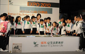 中新網(wǎng)5月17日電 據(jù)上海市僑辦消息,日前,上海市盧灣區(qū)華文教育基地——七色花小學(xué)的操場熱鬧非凡,來自美國、英國、澳大利亞、巴西等不同國家和地區(qū)的同學(xué)和家長在十個國家場館平面模型前擺開了陣勢,模擬世博參觀情景。