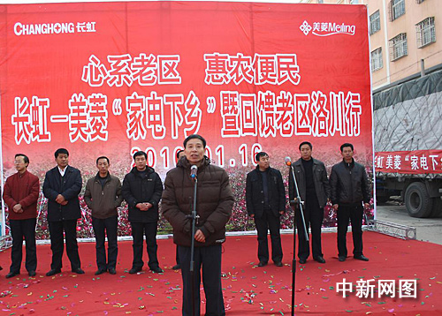 中新網(wǎng)1月18日電 1月16日,“長虹-美菱家電下鄉(xiāng)暨回饋老區(qū)洛川行”現(xiàn)場儀式活動(dòng)在革命老區(qū)延安洛川縣舉行。陜西省財(cái)政廳、商務(wù)廳、陜西省消協(xié)及延安市、洛川縣有關(guān)領(lǐng)導(dǎo)出席了活動(dòng)。