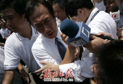 最后,隨郭臺銘來到正在富士康召開的“第三屆海峽兩岸心理暨社會學專家團調研座談會”現(xiàn)場,向媒體介紹富士康應對跳樓事件所采取的四大措施。