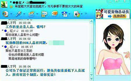 無獨有偶,網(wǎng)友“xiaoyouzi”發(fā)帖說,他是勁舞團(網(wǎng)絡(luò)游戲,玩家喜歡簡稱AU)玩家,沒想到找工作遭遇“歧視門”,企業(yè)招聘要求里規(guī)定“不收有勁舞團歷史者”。同時,他在帖子里上傳五張與某人才網(wǎng)人事部領(lǐng)導(dǎo)的QQ聊天記錄。該領(lǐng)導(dǎo)解釋說玩勁舞團的玩家90%人品存在問題,為了保證正常運行,避免素質(zhì)低下人員混進,因此才制定該項制度。該領(lǐng)導(dǎo)竟然直言不諱說“玩勁舞團的90%屬于人格分裂”。