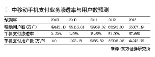 東方證券撰寫報告認(rèn)為這種應(yīng)用于特定的零售、電子商務(wù)和交通等領(lǐng)域的小額現(xiàn)場支付場景,具有快捷、便利、安全三大客戶價值!澳壳埃幸苿右言10省范圍內(nèi)開展手機(jī)支付業(yè)務(wù)的試商用。調(diào)查顯示,市場對該業(yè)務(wù)有較強(qiáng)關(guān)注度,移動各營業(yè)廳中,對手機(jī)支付業(yè)務(wù)的問詢度日趨上升;而在已開通手機(jī)支付業(yè)務(wù),實(shí)現(xiàn)特約商戶購物和搭乘交通工具的城市中,用戶對該業(yè)務(wù)反響良好,對該業(yè)務(wù)發(fā)展前景看好。”