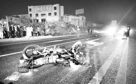 昨晚7時15分左右,閩侯上街福銀高速公路福州西出口的第一個紅綠燈處,一輛小車撞上了一輛摩托車,摩托車載著四個人,一人當(dāng)場身亡,其他三人傷勢嚴重,被送往醫(yī)院搶救。