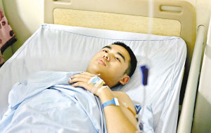 昨日下午,記者在醫(yī)院目睹了薛梟經(jīng)受的系列治療,過程很痛楚,但他很能忍耐。面對(duì)來訪者關(guān)心的詢問,他笑著回答:“沒事!睂(shí)際上他右臂截肢后傷口一直很痛,夜里很難安眠。薛梟被埋時(shí)耳朵進(jìn)了沙石,這些沙石要掏出來為防以后失聰。掏耳朵時(shí)疼極了,還出了血,需要等結(jié)疤后再次掏。他的右腿肌肉因?yàn)槭軌,昨天開始理療。此外他的肺部在被埋時(shí)吸入異物,導(dǎo)致他咳嗽不斷。母親譚忠燕又痛心又自豪地說:“這孩子很能吃苦,我相信他一定能挺過去。”