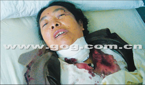 昨日下午,記者在貴醫(yī)附院看到了這名躺在病床上的老人。老人大約50多歲年紀,女性,衣著較為整潔。接診護士告訴記者,老人剛被送到醫(yī)院的時候可以說話,但是問及家里的情況時,老人卻拒不回答。同時,護士還表示從老人的只言片語中聽到,老人說咽喉部位插的水果刀是她自己捅的。