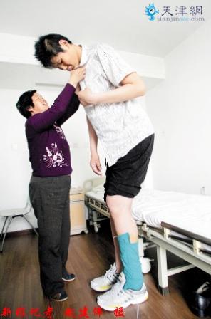 趙亮走起路來動(dòng)作很慢,甚至是一瘸一拐的,他的左腳幾乎用不上力。他摸著左腳說,自從在一次扣籃中扭傷了左腳后走路就總是“踮腳”,時(shí)間一久,就慢慢變成了一瘸一拐。隨著年齡的增長,趙亮的傷情也越來越重。上周五,在親戚的介紹下,他來到天津檢查身體。