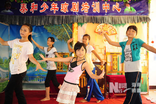 海南瓊海市退休教師王昱為傳承地方戲劇,用退休金義務(wù)創(chuàng)辦“泰和少年瓊劇培訓(xùn)中心”。他的義舉得到社會(huì)各界的支持和幫助,開(kāi)班兩年多來(lái)有近百位孩子前來(lái)培訓(xùn)班學(xué)習(xí),學(xué)員當(dāng)中最大的15歲,最小的才4歲。參加培訓(xùn)的孩子常被邀請(qǐng)到各地演出,精彩的表演受到戲迷們的歡迎。培訓(xùn)班里的6名學(xué)員在一次全省瓊劇擂臺(tái)爭(zhēng)霸賽中,從1800名選手中脫穎而出,成功晉級(jí)50強(qiáng),其中兩人晉級(jí)8強(qiáng),10歲的符小玉憑借嫻熟的唱、念、做、打征服評(píng)委和觀眾,奪得大賽三等獎(jiǎng)。(新華網(wǎng)/蒙鐘德 攝)
