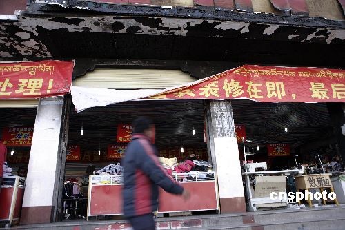 圖:拉薩商業(yè)街被毀商店殘跡仍存——中新網(wǎng)
