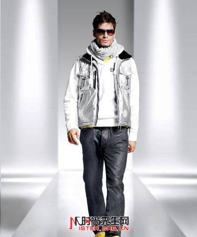 特殊的材質(zhì),如碳纖維、PU膠、光蠟、軋光印花布、PVC、漆光及金屬質(zhì)感,彷彿幫服裝上了一層亮光膜,賦予了外太外空般的未來(lái)科技感;而不規(guī)則收邊、洗舊質(zhì)感與粗獷的印染效果,更展現(xiàn)了十足經(jīng)典復(fù)古風(fēng)尚。由于“太空人”及“搖滾風(fēng)”是兩大主題圖像,再搭配童趣的電玩“小蜜蜂”的畫(huà)面,讓Strellson男裝精采地展現(xiàn)了大男孩風(fēng)尚。色調(diào)上本季選用獨(dú)特的“巖石灰”為本季重點(diǎn),黑、白、沙色和咖啡色是基調(diào),綠、銀、鮮黃、正紅、土耳其藍(lán)則穿插點(diǎn)綴,讓人眼睛為之一亮呢!