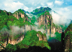第二天的游程更精彩,我們?cè)缟先チ舜簖堜,到底占了個(gè)“大”字,水勢(shì)落差達(dá)197米,是小龍湫的整整3倍。沿著蜿蜒曲折的游道,觀兩邊奇形怪狀的山峰,那芙蓉峰初看像一把大剪刀,導(dǎo)游說(shuō)還是“張小泉”牌的呢?蓳Q一個(gè)角度居然變成了帆船的桅桿了,再走幾步看又幻作一只啄木鳥(niǎo),再走再瞧,又像極了一頭要偷吃蜂蜜的狗熊,真是移步換景。