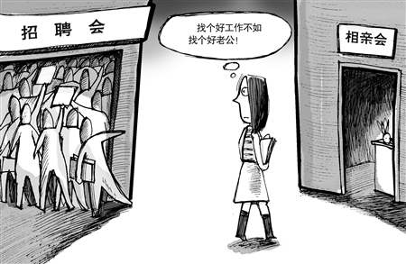 受金融危機影響,今年高校畢業(yè)生的就業(yè)壓力比較沉重,“男靠家,女靠嫁”、“找個好工作不如找個好老公”的觀念開始在高校部分女生中出現(xiàn),婚姻成為不少女生的另一條“退路”。在征婚時,有一定的經濟基礎和穩(wěn)定收入成為她們的首要條件。