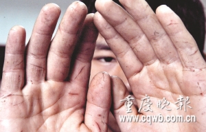 昨日,記者細數(shù)小志雙手傷口,多達26道,遍及手掌、手背和手指,最長的有四五厘米。
