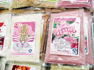 些敷臉的粉末不在護膚品分類中出現(xiàn),而是在超市的面粉區(qū)域銷售,也有近百種之多,將水果、蔬菜以及堅果的提取物同面粉結(jié)合,這樣的粉可以用溫水調(diào)和,用小火或微波爐煮制食用,也可以加蛋清或蜂蜜敷臉,其實喜歡DIY面膜的女士們一定知道,用蛋黃混合面粉而成的面膜薄薄地涂在臉上,可滋潤皮膚。只不過現(xiàn)在我們食用的面粉可以用這些特殊的面粉代替了,會有更多的功效在里面,比如美白、抗敏、排毒等功效。可選擇的有杏仁粉、枸杞粉、玫瑰花粉、苦瓜粉、淮山粉、薏仁粉、檸檬粉、蘆薈粉、白芷粉、紅豆粉、綠豆粉、杜鵑花粉、黑木耳粉、荷葉粉等等。70克一小袋兒要花費近17元,顯然敷臉比食用更劃算些。(文/攝 孫小雅)