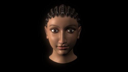 法醫(yī)人類學(xué)家卡羅琳·威爾金森借助電腦技術(shù)復(fù)原出阿爾西諾頭像。“她前額較長(zhǎng),這一特征在古埃及人和非洲黑人中較為常見。這顯示出她的混合血統(tǒng)!