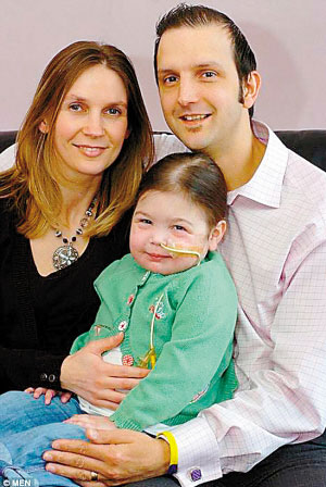 據(jù)英國(guó)《每日郵報(bào)》20日?qǐng)?bào)道,現(xiàn)年5歲的英國(guó)女孩杰斯敏·米爾扎日前創(chuàng)造了醫(yī)學(xué)史上的奇跡,因?yàn)樗群笠浦擦税职值母魏蛬寢尩哪I,成為英國(guó)第一例由父母共捐器官救活的孩子。目前,小杰斯敏恢復(fù)良好,已經(jīng)重返學(xué)校了。