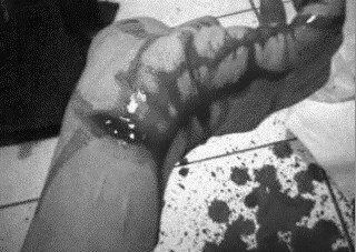 記者看到,帖子中還貼上了兩張割腕時(shí)血腥的照片,女孩被割破的左手有一道明顯的口子,依然還冒著血,而地板上一攤紅紅的鮮血看了讓人覺(jué)得不寒而栗。
