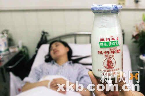 昨日下午,記者在廣州第十二人民醫(yī)院住院部見(jiàn)到了朱小姐。4月3日晚上7時(shí)許,她和同事楊小姐從冼村商業(yè)步行街經(jīng)過(guò),看到風(fēng)行牛奶店后便進(jìn)入想買酸奶喝。由于當(dāng)時(shí)店內(nèi)人較多,她本人不能喝冰凍的酸牛奶,服務(wù)員便讓她自己取,她從貨架上拿了一瓶“酸牛奶”。