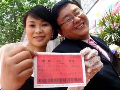 “‘火車票’很直觀就反映了我們的愛情!崩滓圾Q說,他同時也希望每個拿到它的人都能保存它并回憶起這一天的開心。(記者 黃海英 李祥云)