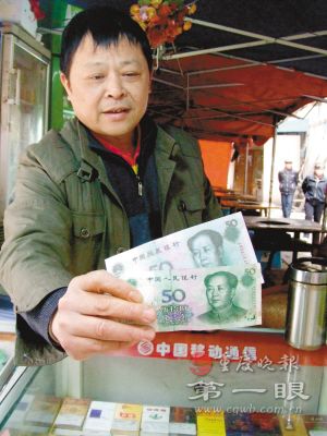 現(xiàn)在有假鈔替代真鈔的,但你見過用冥幣來冒充人民幣的嗎?昨日,渝中區(qū)響水橋6號煙攤老板王國華就遇到了這件事,“經(jīng)常收錢,一摸就認出來了,但冥幣做成人民幣的樣子,面值小的,不注意還真容易弄混。”王國華說。