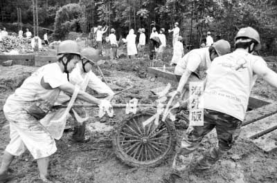 7月底的四川悶熱得很,幾乎每天的氣溫都在37攝氏度左右,即使是什么都不干,都會(huì)出汗。再加上為了避免曬傷,隊(duì)員們都穿著長(zhǎng)袖上衣和長(zhǎng)褲工作,更是熱得大汗淋漓。后來(lái),趕上3天都在下雨,為了不延誤工期,大家就穿著雨衣堅(jiān)持工作。志愿者們的想法很簡(jiǎn)單:“因?yàn)槲覀儾皇枪と耍侵驹刚,所以才要在雨天繼續(xù)工作,抓緊時(shí)間完成任務(wù)。我們想為在冬天來(lái)臨之前,讓更多的災(zāi)民搬出簡(jiǎn)易房,住進(jìn)新房子盡一份力!”