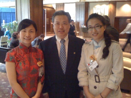 她們的熱情服務(wù)很快就吸引了中國(guó)代表團(tuán)成員以及中國(guó)駐美使館官員們的注意。使館官員對(duì)她們的服務(wù)非常滿意,專程代表周文重大使對(duì)她們不辭勞苦的志愿服務(wù)表示感謝。中國(guó)駐紐約總領(lǐng)事彭加玉還專門駐足在展臺(tái)前,與她們親切交談,并與她們合影留念。在得知這些志愿者沒有飯吃的消息后,使館官員還自掏腰包,解決了幾位志愿者的飲食問(wèn)題。這樣,中國(guó)來(lái)的志愿者就成了所有志愿者中最讓人羨慕的一組,因?yàn)樗麄兛梢韵碛煤虶20峰會(huì)官員一樣的就餐待遇。