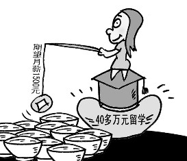海歸低薪求職敲響了盲目留學(xué)的警鐘,對此,學(xué)生和家長一定要有充分和清醒的認(rèn)識。(何勇 唐春成/漫畫)