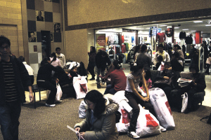 就讀紐約州立大學的劉同學和十多個友人從感恩節(jié)中午就抵達購物中心停車場,帶著椅子、毯子,還有撲克牌、iPod等各種消遣物品。他們看中的是戴爾手提電腦,當天的BEST BUY價格要比平時便宜400多元,他們每人都打算買一臺。