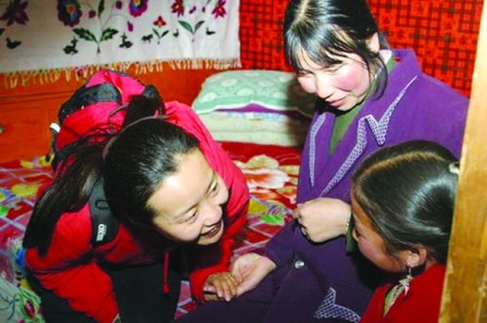 盛嘉璐沒有退縮。她克服了當?shù)貧夂驉毫、水源不足、交通不便、通訊不暢、教學設備欠缺等各方面的困難,全身心投入教學當中。由于教學設備的稀缺,盛嘉璐在實際教學當中甚至把學生帶來的雞蛋、水果等各種東西搬到了課堂上。