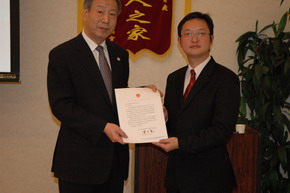 晚會進(jìn)行中,孫建明公使銜參贊向2009年度東京地區(qū)部分大學(xué)45位會長代表頒發(fā)了榮譽(yù)證書和紀(jì)念品。