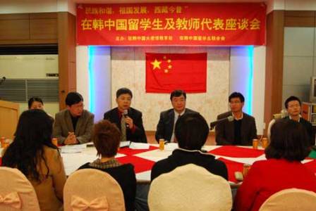 3月6日,“民族和諧,祖國(guó)發(fā)展,西藏今昔”——在韓中國(guó)留學(xué)生及教師代表座談會(huì)在首爾舉行,中國(guó)駐韓國(guó)大使館臨時(shí)代辦邢海明、使館教育處參贊艾宏歌以及留學(xué)生和教師代表共150余人出席了此次座談會(huì)。