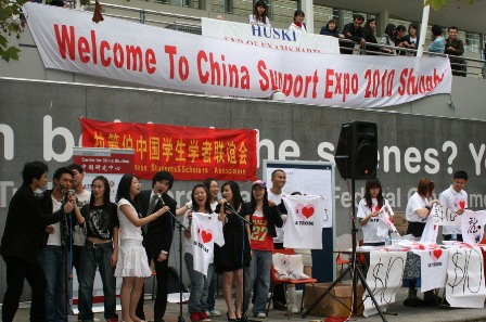 中新網(wǎng)5月7日電 據(jù)中國(guó)駐澳大利亞墨爾本總領(lǐng)館消息,5月4日,澳大利亞拉籌伯大學(xué)中國(guó)學(xué)生學(xué)者聯(lián)誼會(huì)在該校中心區(qū)舉行了迎世博大型活動(dòng);顒(dòng)選擇在中午學(xué)生們課間休息的黃金時(shí)間舉行,吸引了數(shù)百名師生駐足觀看。該校國(guó)際學(xué)生部及中國(guó)研究中心代表出席,駐墨爾本總領(lǐng)館教育領(lǐng)事出席。