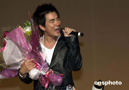 圖為應(yīng)邀擔任此次大賽嘉賓的中國臺灣著名歌手任賢齊在演唱助陣。