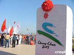 長春二零零七年第六屆亞洲冬季運(yùn)動(dòng)會(huì)會(huì)徽九月二十一日下午在長春市揭曉。深圳市王春濤設(shè)計(jì)的作品“飛越”最終當(dāng)選為亞冬會(huì)會(huì)徽。會(huì)徽以兩個(gè)英文字母“C”組成,是跳臺(tái)滑雪的運(yùn)動(dòng)造型,它既代表第六屆亞冬會(huì)的舉辦國“中國”和舉辦城市“長春”,又體現(xiàn)了更高、更快、更強(qiáng)的奧林匹克精神。中新社記者:吳兆飛