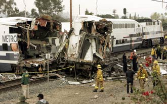 警方和救援人員稱,初步調(diào)查表明這起重大交通事故是由一名打算自殺的年輕人將汽車停在鐵路軌道上造成的。事發(fā)時,一列往南行進的輕軌列車在洛杉磯地區(qū)的格倫代爾鎮(zhèn)撞上這名年輕人停放在軌道上的吉普車后出軌,又與另一列往北行進的輕軌列車相撞,車廂翻倒。