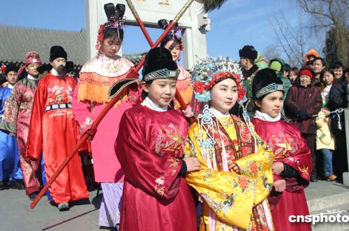 二月九日農(nóng)歷大年初一,北京大觀園依據(jù)中國古典文學名著《紅樓夢》的描繪,推出紅樓廟會的精品節(jié)目“元妃省親”儀式以其濃郁的民族特色,為雞年紅樓廟會錦上添花。作者:張勤