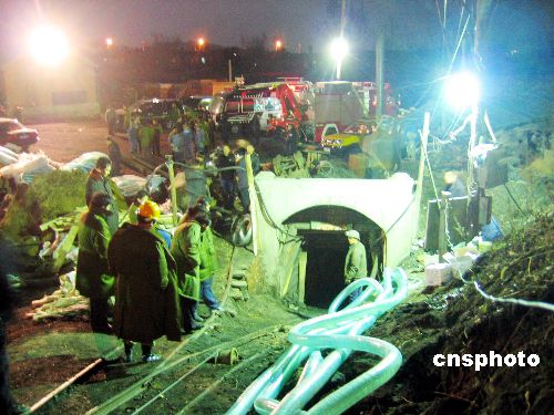 目前,事故現(xiàn)場成立了吉林省、吉林市、蛟河市三級搶險(xiǎn)指揮部,搶救工作正分兩方面同時進(jìn)行,一是堵塞吉安煤礦透水點(diǎn),同時組織騰達(dá)煤礦緊急抽水,營救被困礦工。