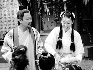 其實(shí)這段老年裝的戲原來(lái)在劇本中是沒有的,但導(dǎo)演認(rèn)為如果加一段老年戲會(huì)讓整個(gè)劇更加充實(shí),所以臨時(shí)改戲。原本是考慮讓吳宗憲和苗圃這一對(duì)戲里的小夫妻都化老妝,但可惜的是苗圃臉上的皮膚實(shí)在是太緊了,怎么化都老不了,最后只能把吳宗憲一個(gè)人扮老,苗圃只能屈就著演他孫女了。這是吳宗憲第一次以老年造型出現(xiàn)在電視熒幕上,自然很新奇,也很受期待。他一化完妝馬上跑到大家面前展示,但還不改貧嘴本性自夸說(shuō)自己老了都這么帥,所以又是拍照留念,又是擺造型的,惹得劇組人員哈哈大笑。(蓋云飛)