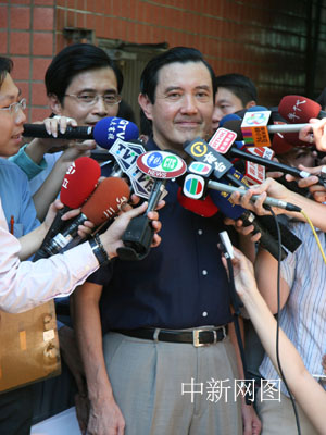 7月16日,中國國民黨主席選舉在全臺601個投票所展開。圖為1號參選人、臺北市長馬英九在居家附近的臺北興德小學(xué)參加投票前,接受記者采訪。中新社記者 董會峰