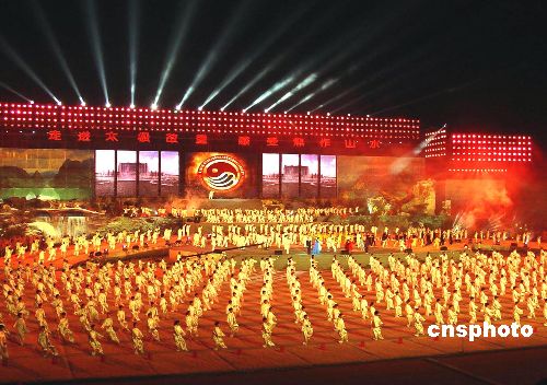 | 本月二十晚,近千名海內(nèi)外太極拳代表們在第三屆中國·焦作國際太極拳交流大賽暨第四屆焦作山水國際旅游節(jié)整開幕式同打太極。中國武術(shù)協(xié)會主辦、河南省體育局和焦作市人民政府承辦的第三屆中國·焦作國際太極拳交流大賽暨第四屆焦作山水國際旅游節(jié)在焦作與本月二十日至二十五日在河南焦作隆重舉行,來自美國、日本、西班牙、新加坡等二十一個(gè)國家和地區(qū)的一百一十五支隊(duì)伍、一千一百五十人報(bào)名參賽。作者:史寶銀