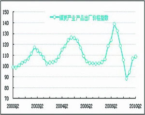 預警:2010年二季度,中經煤炭產業(yè)預警指數(shù)為103.3點,比上季度下降3.4點,在“綠燈區(qū)”內小幅回落。這主要因為產品銷售收入同比增速出現(xiàn)逆轉,產量有所下降等。
